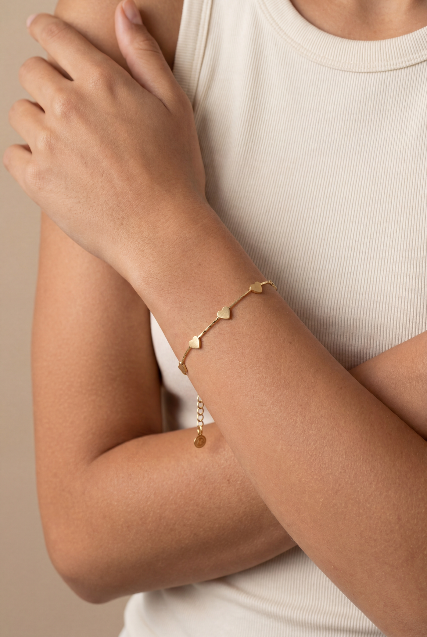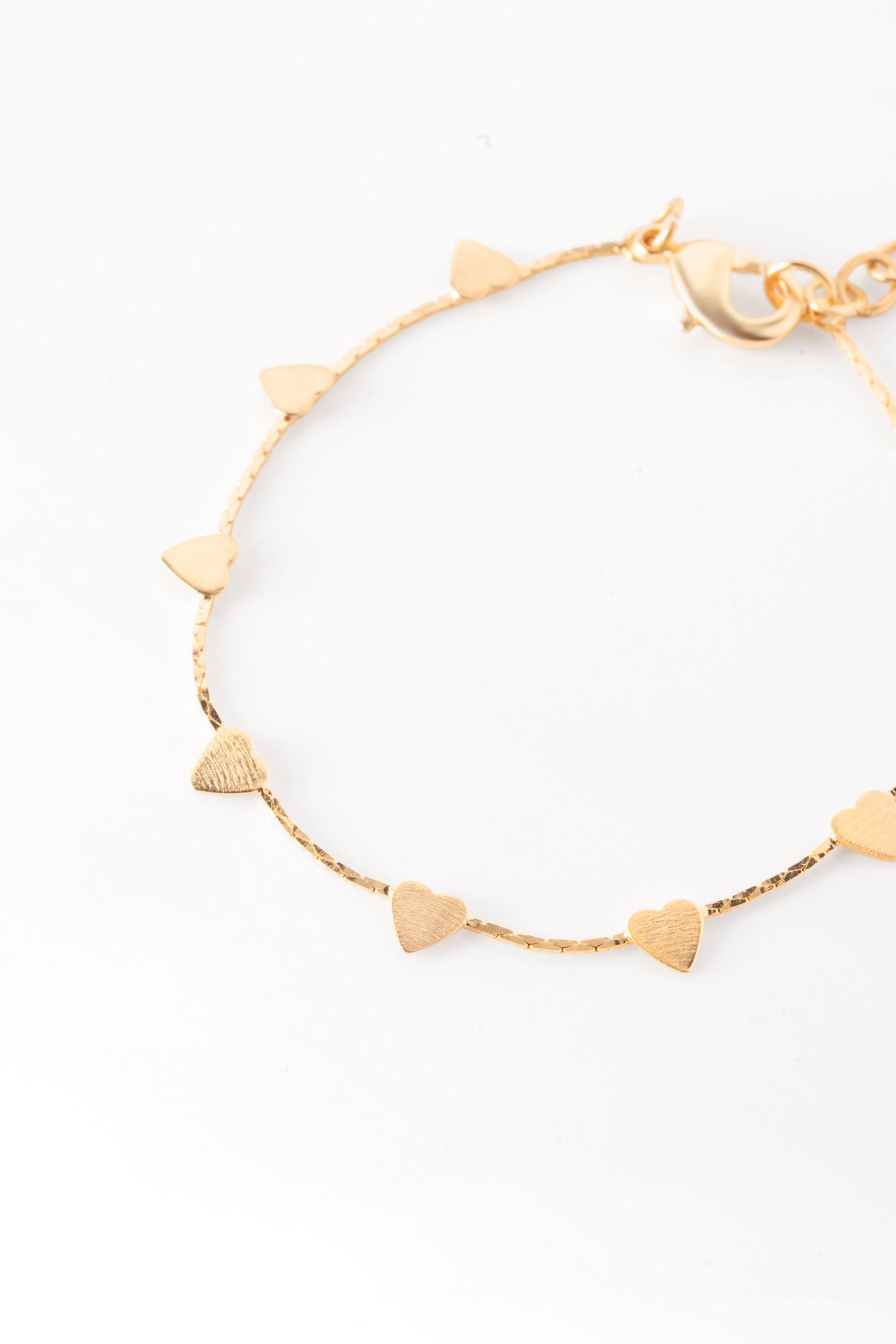 The Amor Mini Heart Bracelet features a fine matte-finish chain adorned with a series of tiny fixed heart details. Subtle and softly textured, the hearts sit evenly along the chain, creating a delicate, modern piece designed to layer seamlessly or wear on its own.
