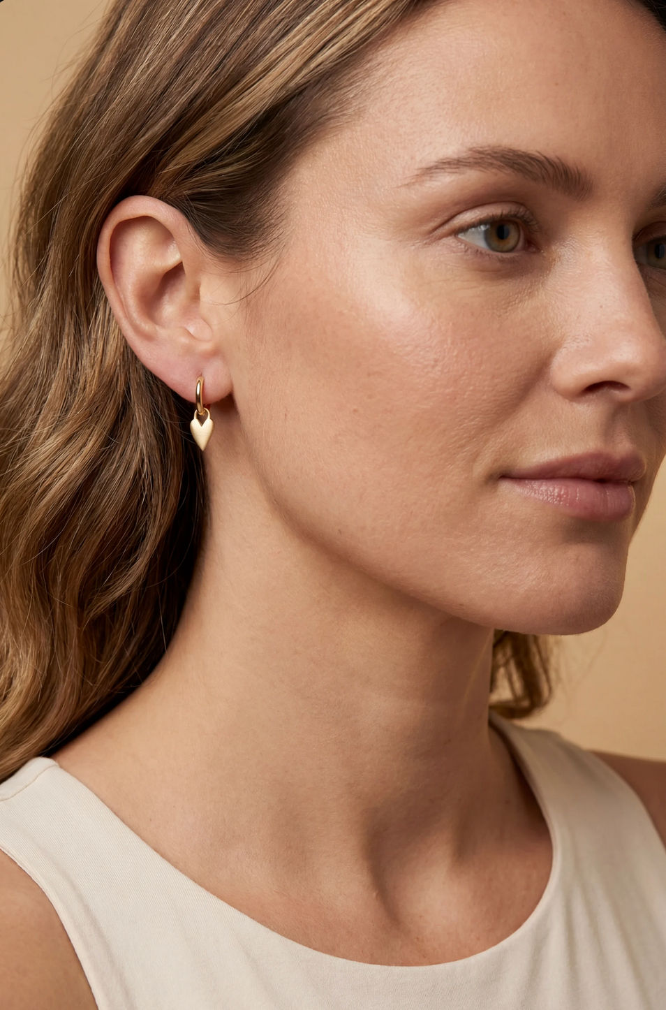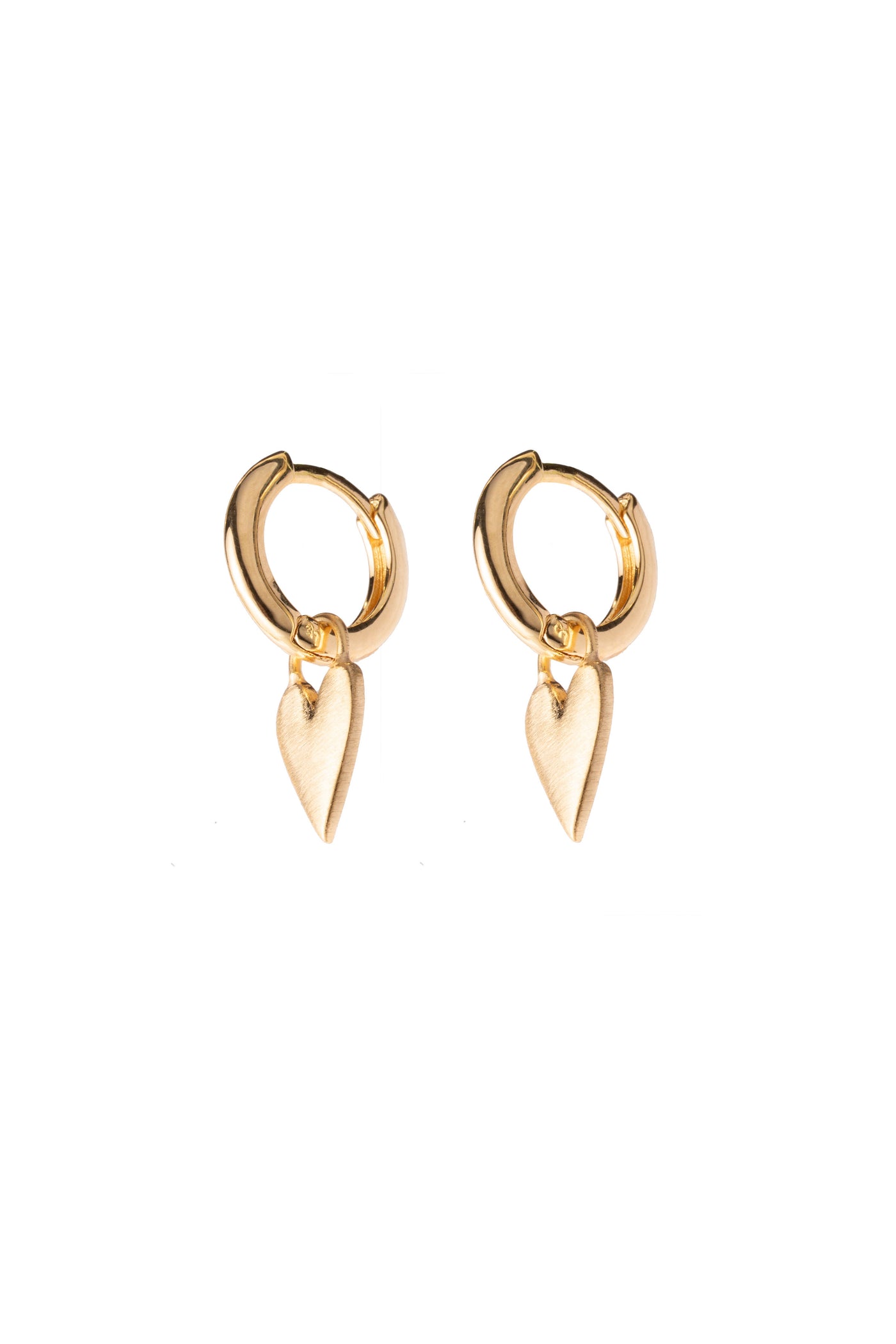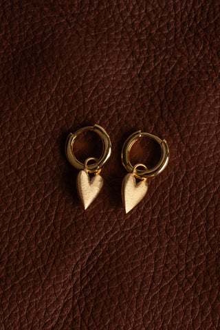 The Amor Heart Huggies feature a softly sculpted matte-finish heart set on a classic huggie silhouette. The matte gold surface adds depth and a modern edge, creating a refined statement that feels intimate and timeless.