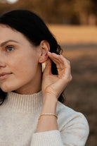 Gold-filled jewellery has a thick layer of real gold mechanically bonded to a base metal — typically brass. Unlike gold-plated jewellery, which uses a very thin layer that can chip or tarnish, gold-filled has 100 times more gold content. It's durable, long-lasting and safe for sensitive skin.