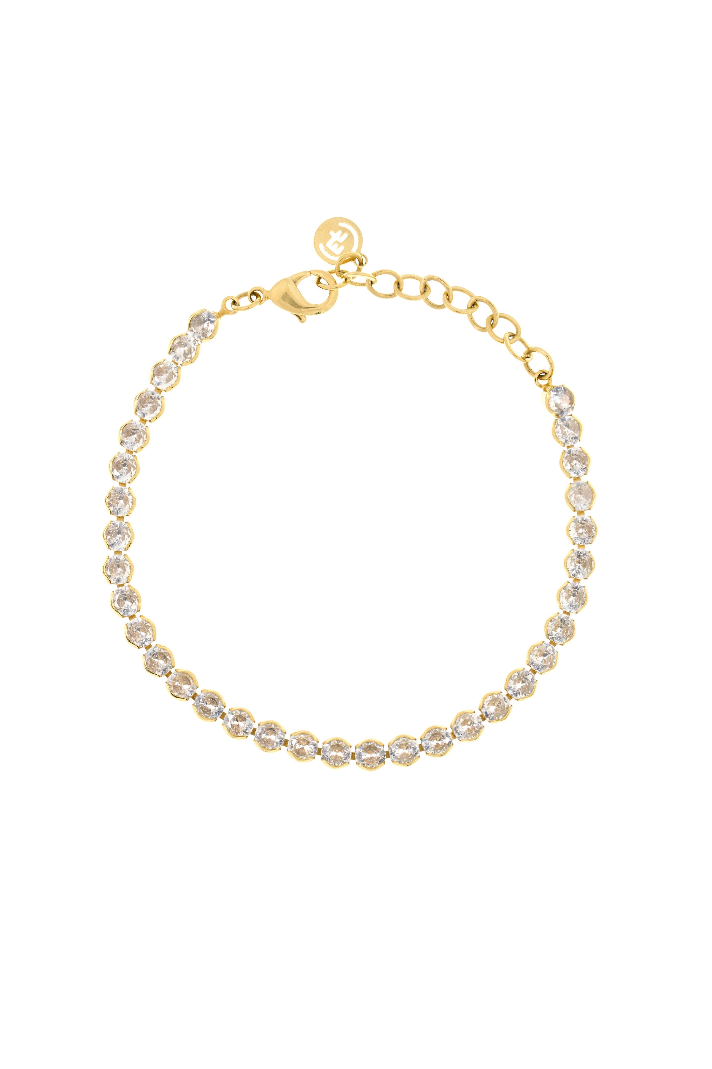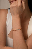 The Luzia Tennis Bracelet reflects that brilliance, with a full row of CZ stones that catch the light from every angle. Finished with an adjustable charm chain, it blends timeless elegance with a modern, luminous touch
